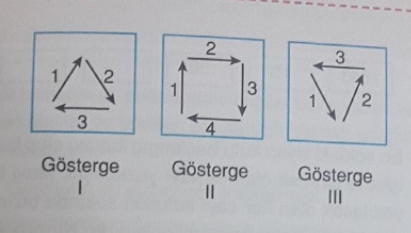 Yukarıda verilen göstergelerdeki oklar verilen numara sırasına göre yanacaktır.