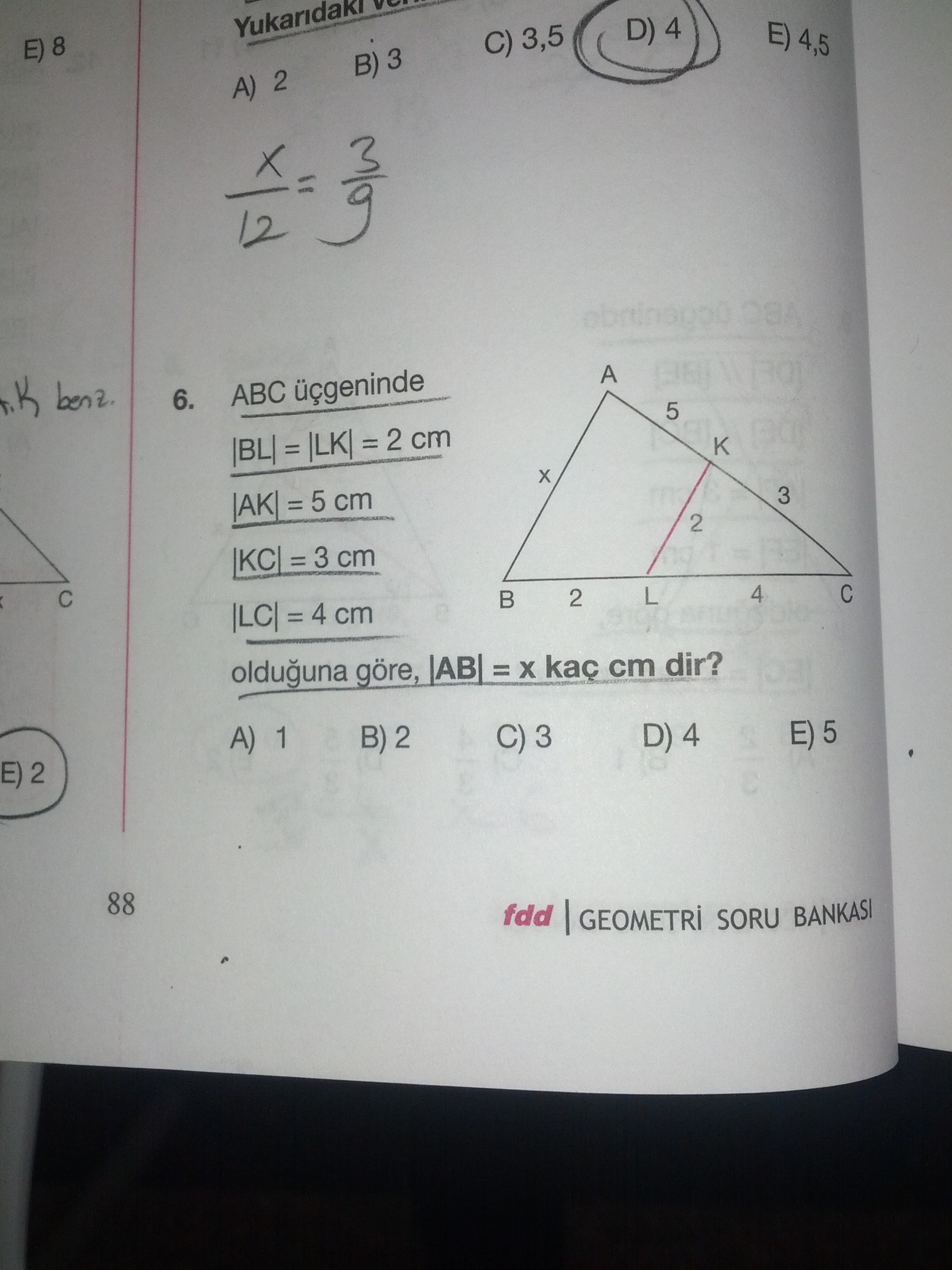 |AK|=5 cm |KC|=3 cm |LC|=4 cm ise |AB|=x kaç cm?