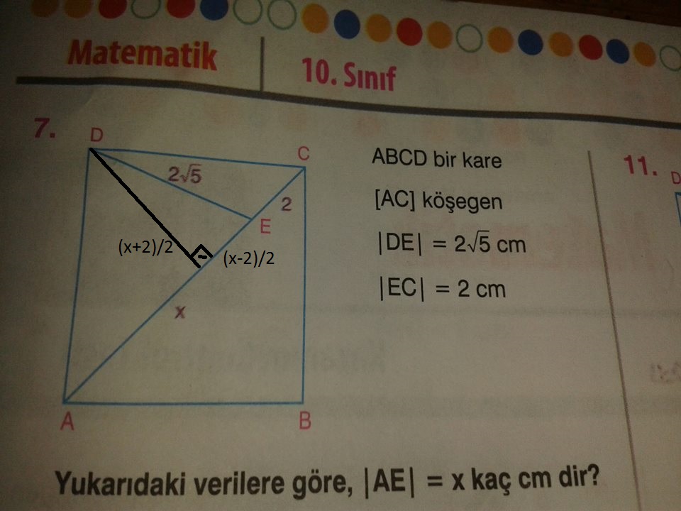 $[DB]$ köşegenini çizin ve karede köşegenlerin özelliklerini hatırlayın soru biter.