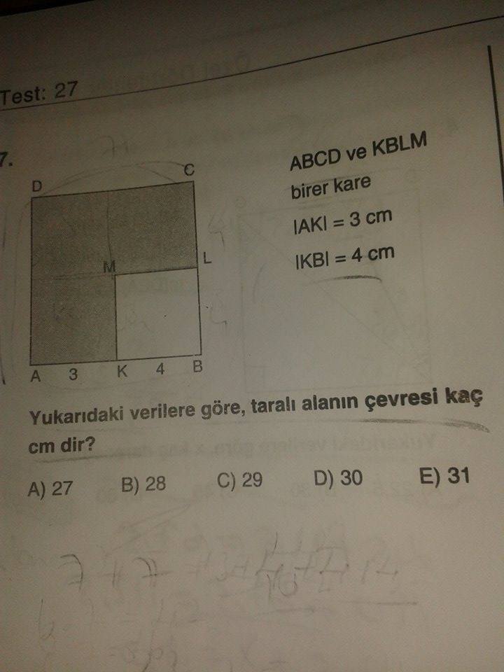 Verilenlere gore tarali bolgenin alani kac cm karedir?