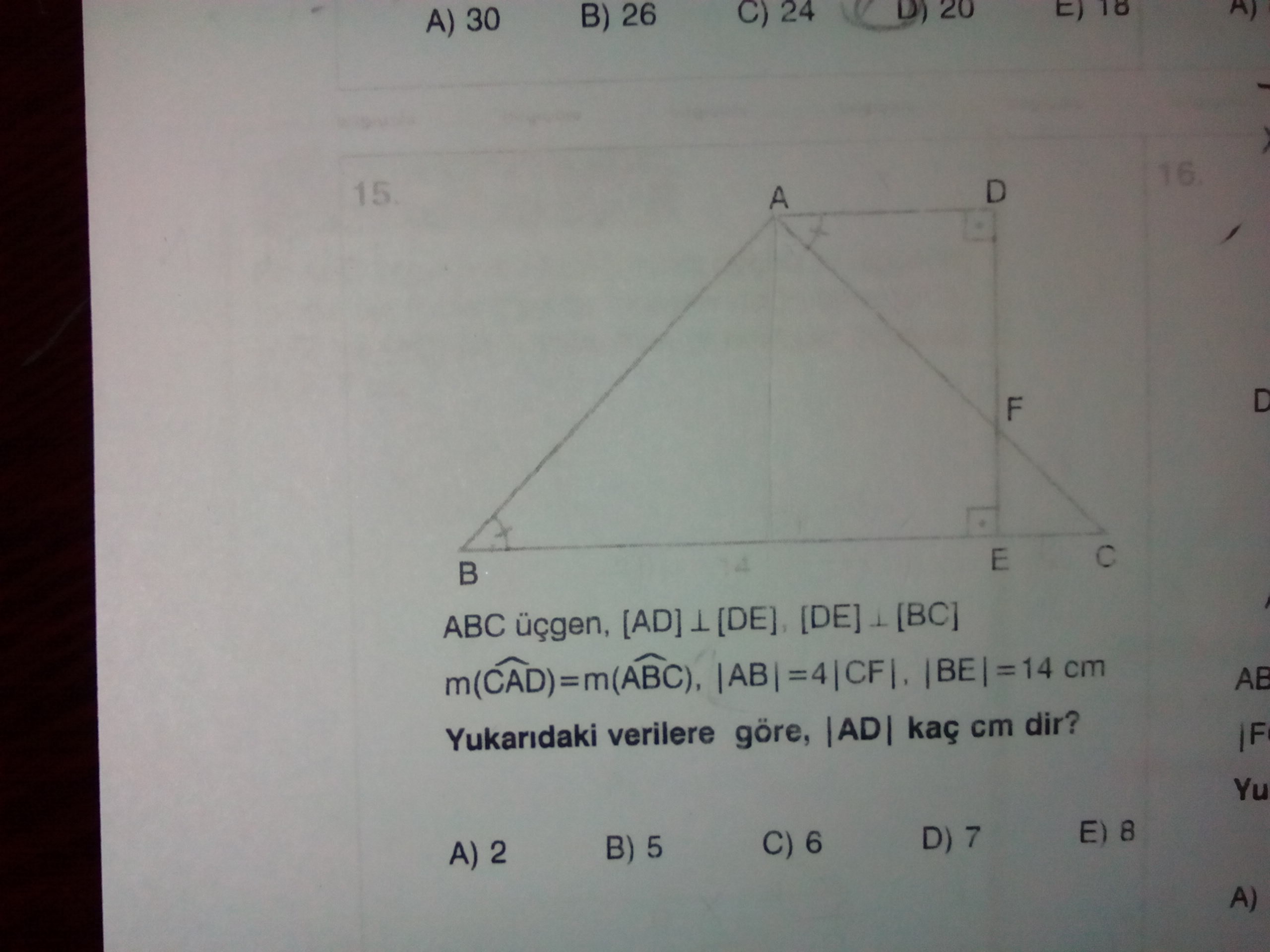 A dan |BC| dikme inirdim. ABC ikizkenar ucgen ADF ile FEC arasinda benzerlik yapmaya calistim.
