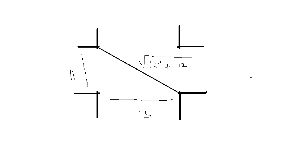 $m(\angle B)=90^0$ olmak üzere $\triangle ABC$ üçgenini çizelim. Bu üçgenin hipotenüsü üzerinde $|DC|<|AD|$ olacak şekilde bir $D$ noktası alalım, ve bu $D$ noktasından üçgenin dışına doğru $[DE//[BC],\quad [DF//[BA]$ çizelim. $C$'den $[DE$'ye çizilen dikmenin ayağı$H$, $A$'dan $[DF$'ye inilen dikmenin ayağı ise $K$ noktası olsun. Eğer $|CH|=a,\quad|AK|=b$ denirse dar koridorun eni $a$ ve geniş koridorun eni de $b$ kadar alınmış olacaktır ($a<b$).Ayrıca $|AC|$ de, yatay konumda bu koridorlardan geçebilecek en uzun merdivenin boyu olacaktır.